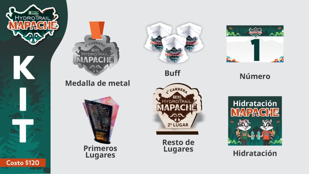 - Todos los participantes inscritos recibirán su kit de participación que incluye: medalla, buff y número, mismo que se entregará el día 25, 26 y 27 de septiembre en la coordinación de actividades extraescolares presentando baucher de inscripción y en horario de 9:00 a 16:00 hrs.